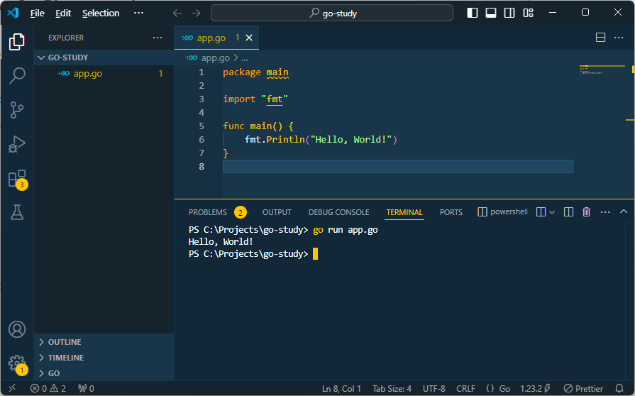 본 시리즈에서는 프로젝트 이름을 go-study로 지정하고 IDE는 vs code를 사용합니다.